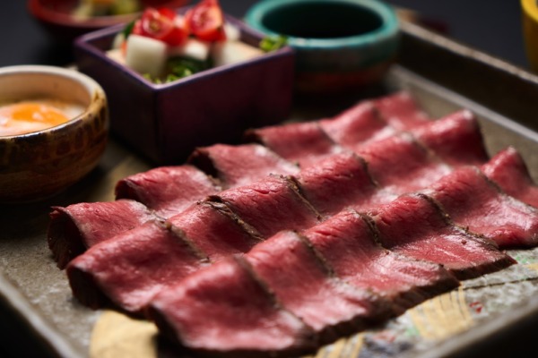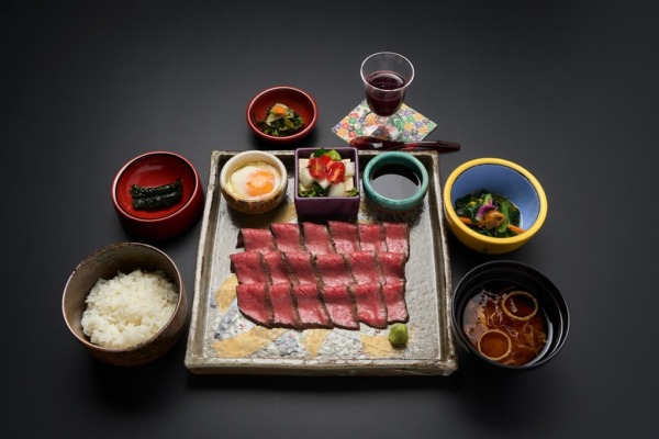 また、大変好評をいただいております当館調理長の手間暇をかけました自慢の米沢牛ローストビーフをたっぷり120gを落ち着いたお膳のカタチにしましてご準備いたしました。