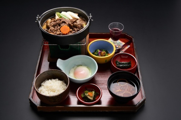 更に!今年は米沢牛ブランド150周年を迎え、米沢市ではこれを記念し「すき焼きのまち米沢」を宣言しました。この機会に当館では150gの米沢牛すき焼き煮込み御膳を3,850円(税込)でご用意いたします。